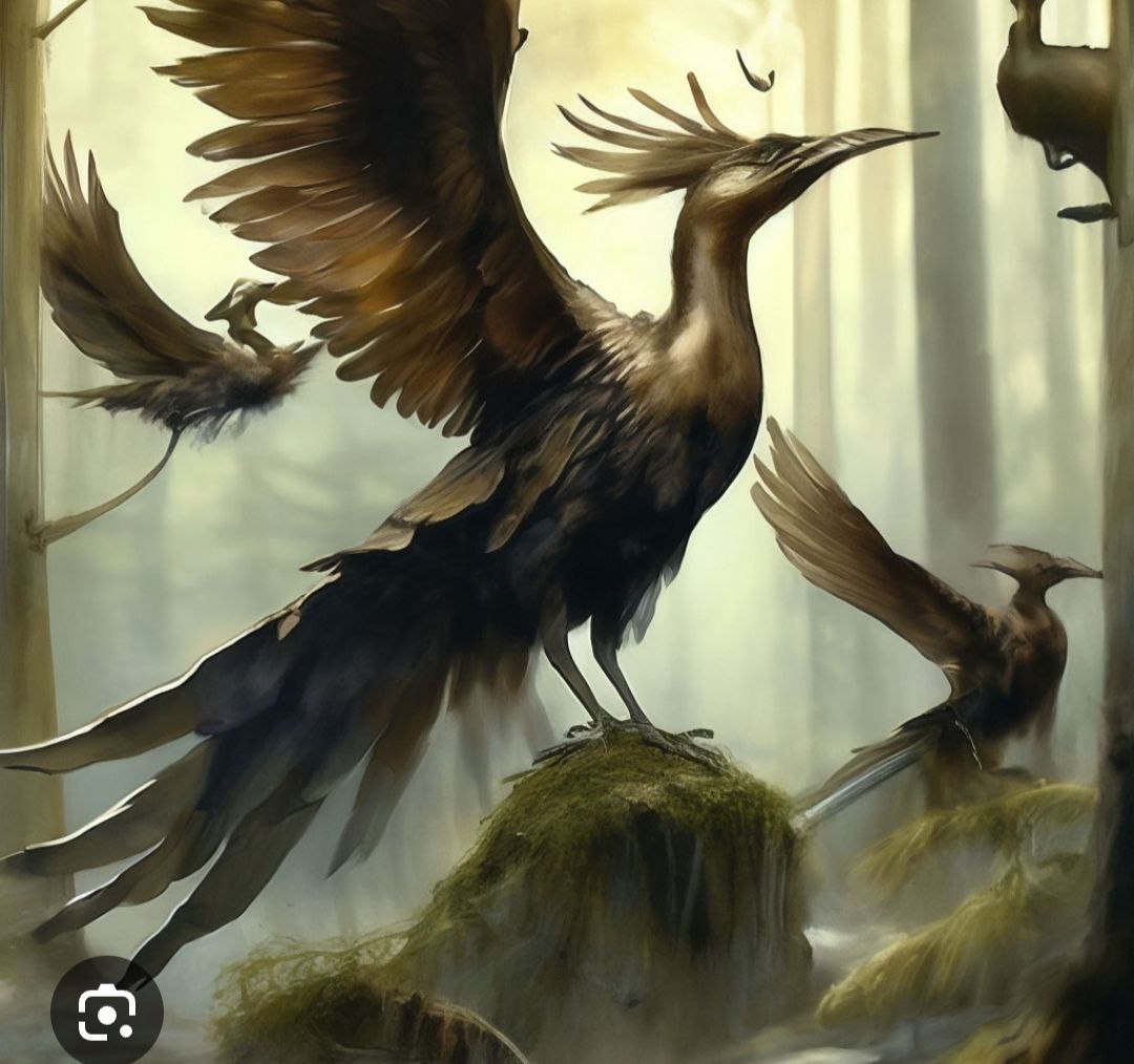 Фантазийных птиц не припомню. Обычно встречаются павлин,голубь,петух,козодой,утка и всегда по деталям они безупречно схожи.